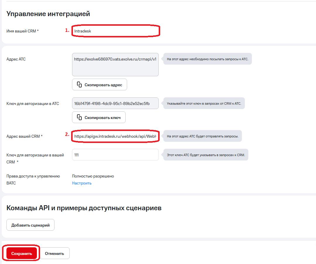 - "Имя вашей CRM" - укажите любое название (например, "Intradesk") (1)
