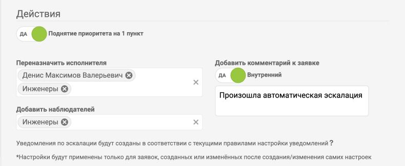 5. Настройки нового правила эскалации будут применены только для заявок, созданных или изменённых после создания/изменения самих настроек.
