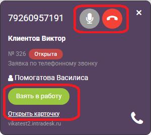 Из окна на Рис 2. можно перейти в карточку этой заявки, внести комментарий. Переназначить исполнителей и т.п. - Функция ClickToCall: по клику на номер телефона клиента в системе IntraDesk сразу происходит исходящий звонок с номера телефона вашей виртуальной телефонии. Рис. 3.Рис. 4.