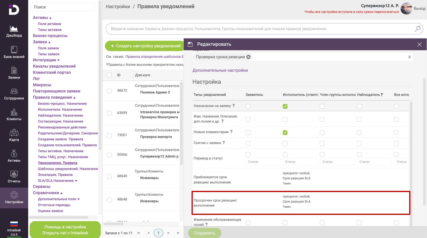 1. Открыть "Настройки - Правила поведения - Уведомленя. Правила - карточка правила"