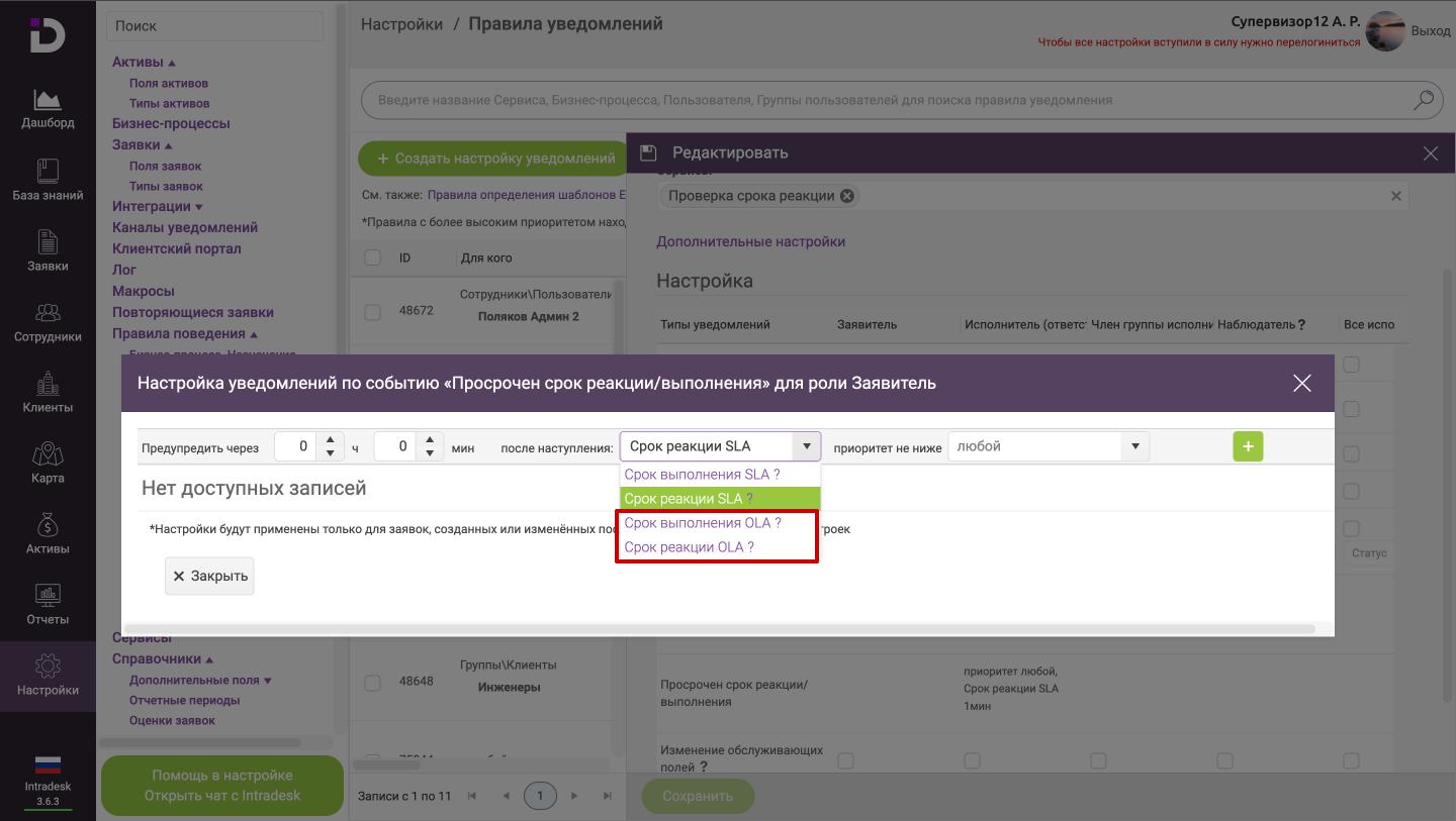 Настройка OLA в системе Intradesk