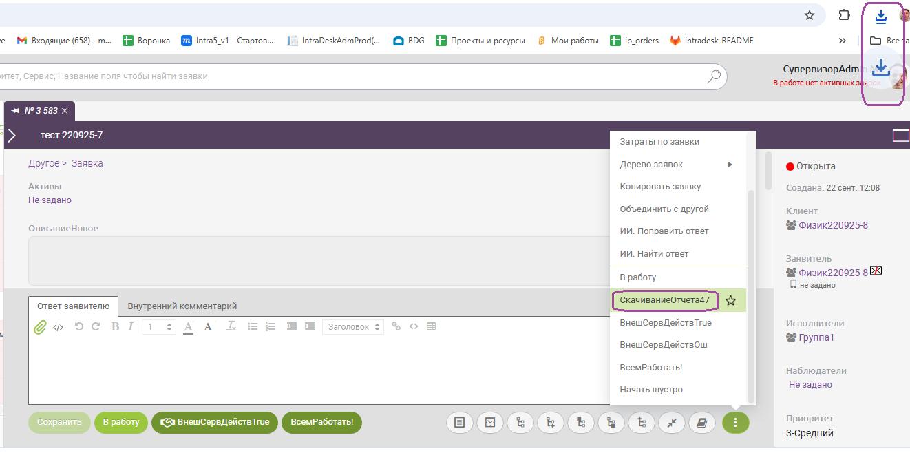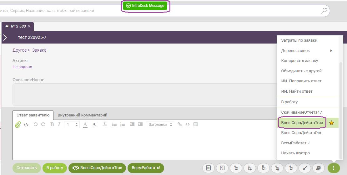 Intradesk выполняет GET запрос к внешней системе, в параметрах добавляет номер заявки