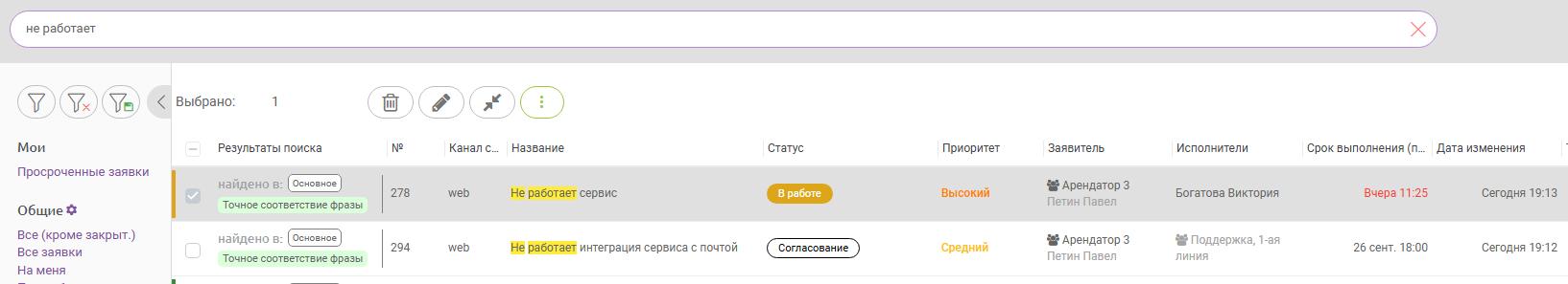 1. Выбрав первую заявку (Рис. 7.), воспользуйтесь умным поиском по названию заявки в списке (Рис. 8).