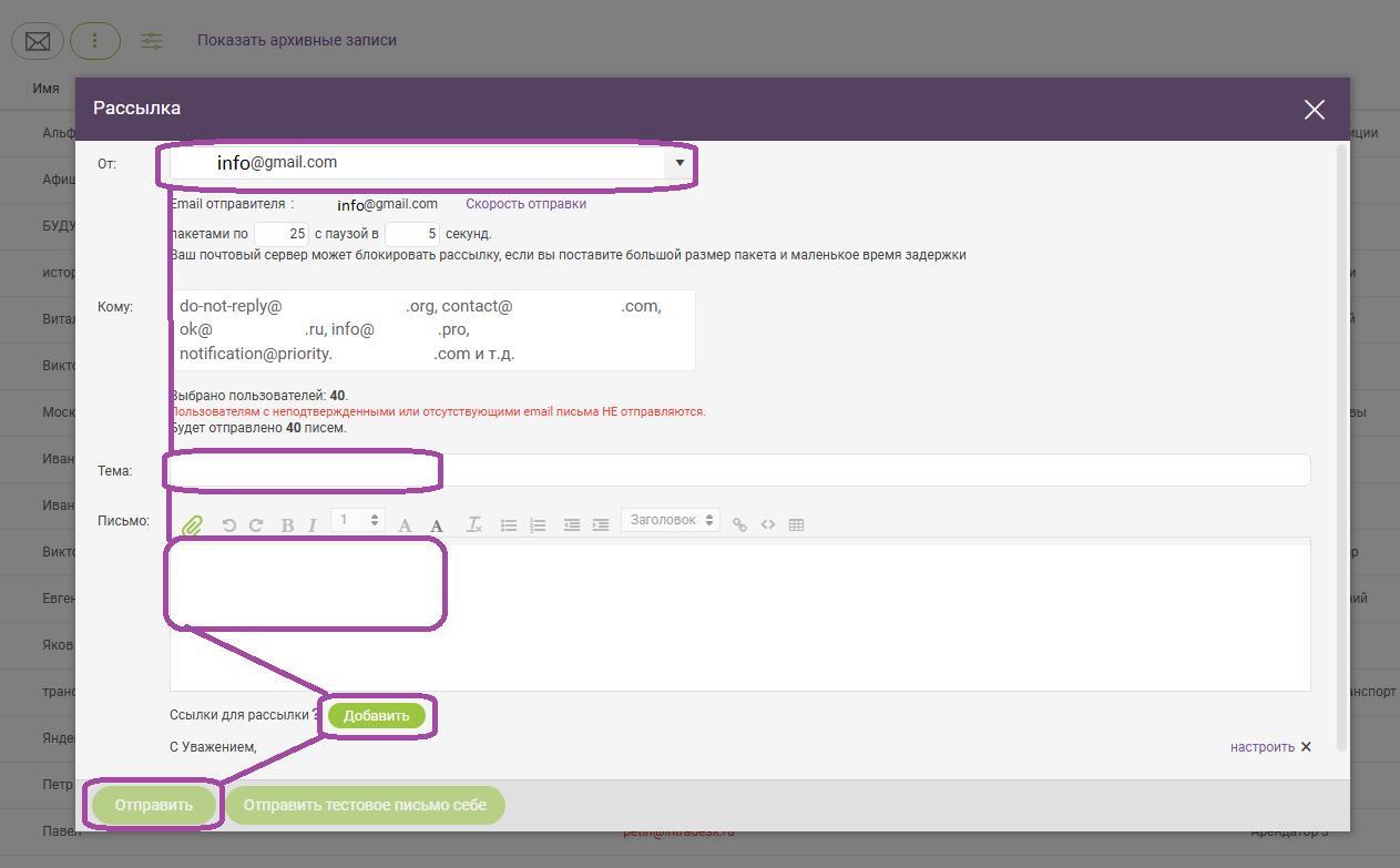 Внимание! Intradesk не предназначен для использования в качестве спам-сервера. Вы подключаете свой почтовый ящик, и рассылка осуществляется через его SMTP.