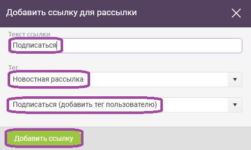 После рассылки часть пользователей кликнет на ссылку "Подписаться", и им присвоится тег "Новостная рассылка".